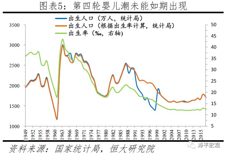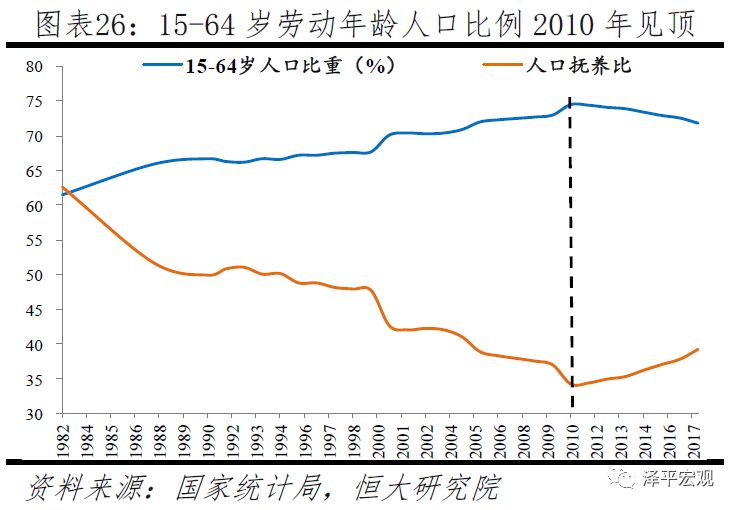 5)人口红利提前消失,中国面临“未富先老”。1978年改革开放后,中国依靠庞大且年轻的劳动力资源,以及与之相关的巨大市场,快速成长为世界第二大经济体。1962-1975年第二轮婴儿潮人口是改革开放40年的建设主力,生产和储蓄多,消费少,导致储蓄率和投资率上升,储蓄超过投资部分产生贸易顺差,同时过剩的流动性和人均收入水平提高推动消费升级,经济潜在增长率较高。在长期低生育率背景下,随着这些人变老,中国15-64岁人口比例和人口总抚养比均在2010年迎来拐点,储蓄率和投资率下降,消费率上升,贸易顺差收窄,经济潜在增长率下降。不过,2017年中国人口总抚养比为39.2%,未来几年仍处于人口负担较轻的“人口机会窗口”期(小于50%)。根据2010年人口普查资料,80后、90后、00后人口分别为2.19亿、1.88亿、1.47亿,90后比80后少约3100万,00后比90后少4100万。