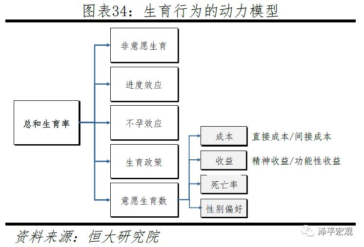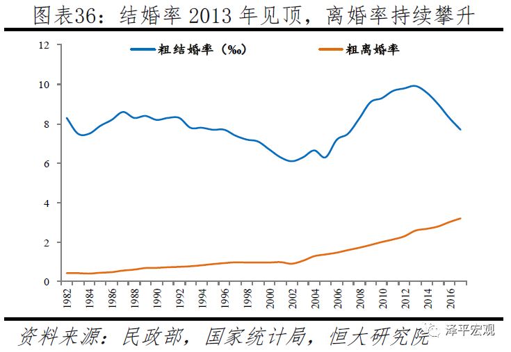 为什么不生?——生育基础削弱、生育成本约束。1)生育理论:从死亡率下降驱动到功利性生育意愿消退,再到成本约束。根据驱动生育率下降主导因素的变化,可将人类历史划分为四个阶段:一是高死亡率驱动阶段,人们需要以高生育率抗衡高死亡率从而保证收益最大化,总和生育率多在6以上。二是死亡率下降驱动阶段,人们认识到低生育率也能保证收益最大化,总和生育率从6以上降到3左右。三是功利性生育消退阶段,人们的生育行为更接近情感需求,并重视子女质量提升,总和生育率大致从3降到2左右。四是成本约束的低生育率阶段,总和生育率降至更替水平2以下,低于意愿生育水平。2)晚婚晚育、单身丁克、不孕不育等削弱生育基础。中国结婚率2013年见顶后持续回落,离婚率持续攀升;晚婚晚育现象日益突出,1990-2015年平均初育年龄从24.1岁推迟至26.3岁,主要初育年龄从20-27岁推迟到22-29岁。因婚姻市场匹配问题及单身主义等,“剩女”规模快速增加至约600万,且约6成在城市,学历越高“剩下”的概率越大。此外,丁克家庭、不孕不育人群增多削弱生育基础。3)住房教育医疗等直接成本、养老负担、机会成本高抑制生育行为,“生得起、养不起”。房价快速攀升,2004-2017年房贷收入比从17%增至44%;教育成本明显攀升,特别是公立幼儿园供给严重不足,1997-2017年中国公立幼儿园在读人数比例从95%降至44%。医疗费用持续上升,1995-2017年居民医疗保健支出上涨22.4倍,远超可支配收入9.2倍的涨幅。中国独生子女约1.8亿,“四二一”家庭结构养老负担重挤压生育意愿。女性劳动参与率高但就业权益保障不够,导致生育的机会成本高。
