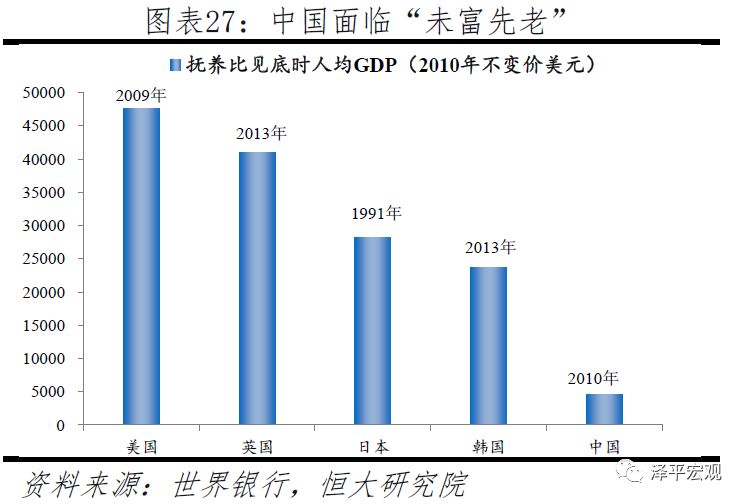 从国际上看,美国、日本、英国、韩国等经济体在人口总抚养比见底时,可比的人均收入均远高于中国。根据世界银行,美国、日本、英国、韩国的人口总抚养比分别在2009、1991、2013、2013年见底。而中国的人口抚养比在2010年见底,人均GDP远低于发达经济体,“未富先老”。中国经济迫切需要从高增长转向高质量发展阶段。