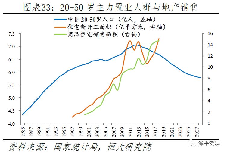 在房地产领域,房地产投资长周期拐点已过,房地产市场从高速增长阶段转向中速、高质量发展阶段。房地产长期看人口,中国20-50岁主力购房人群在2013年见顶,出生人口后期将持续下滑至2030年的1100多万,房地产投资增速已在2010年见顶,商品住宅销售面积大概率在2018年见顶。(具体见《房地产周期》,人民出版社,2017)