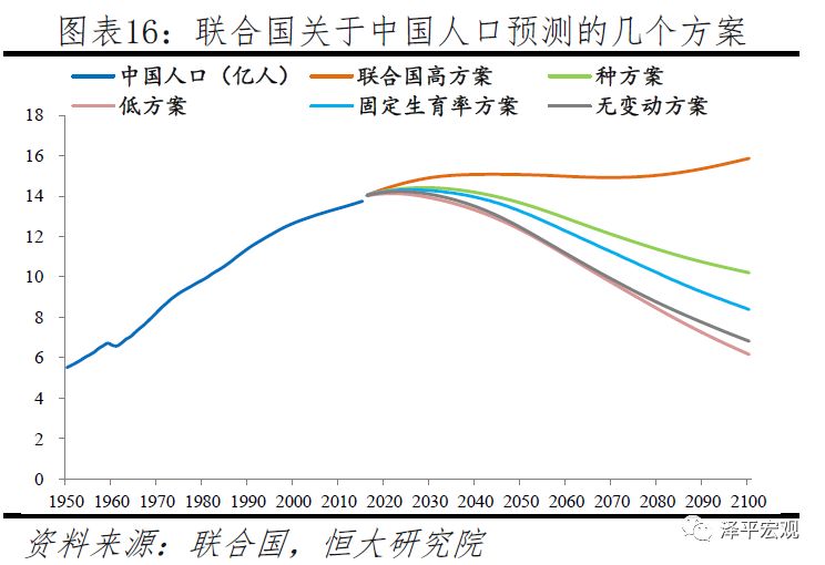 1)中国人口将于2024-2031年前后见顶,具体时间取决于未来鼓励生育政策力度。按照目前的生育趋势,中国人口总量峰值日益临近,只是各机构、人口学者对何时见顶存在一定争议。《国家人口发展规划(2016-2030年)》认为2015年总和生育率在1.5-1.6之间,假设2020年、2030年总和生育率分别为1.8,预测中国人口将在2030年前后见顶,峰值为14.5亿人。