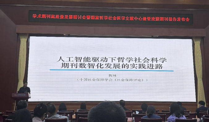 《社会保障评论》受邀参加此次会议,副主编郭林代表期刊参会并做了题为《人工智能驱动下哲学社会科学期刊数智化发展的实践进路》的主题报告。他在报告中分析了人工智能驱动哲学社会科学期刊数智化发展的时代价值、三重路径、策略选择,认为对于哲学社会科学期刊而言,应当通过人工智能,逐渐实现内容生产体系数智化重构、知识服务能力数智化升级、成果传播能力数智化提升。他还提出,哲学社会科学期刊数智化发展需要防止技术滥用,期刊工作者应当明确人工智能的工具性地位,坚持以技术服务自身的理性判断,实现技术的高质量赋能,构建人机共生的和谐数智化发展局面。