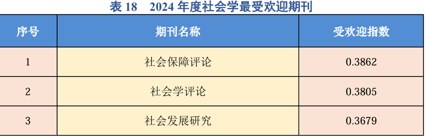该报告选取2024年1月1日以前上线、且有阅读量与下载量的2084种中文期刊、80种中文集刊、23种国内英文期刊进行评估,这些中文期刊涵盖哲学社会科学各个学科,按照论文所属学科把期刊划分为23个学科大类和1个综合大类。经过对这些哲学社会科学期刊的阅读指数、下载指数与受欢迎指数进行计算统计,并按照受欢迎指数排序后,展示前10%的期刊为最爱欢迎期刊。其中,在30种社会学期刊中,前10%的3种为社会学类最受欢迎期刊,由中国社会保障学会主办的《社会保障评论》排名第一,再次入选“最受欢迎期刊”。