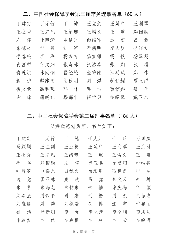 中国社会保障学会第三届 学会领导、常务理事、理事、监事名单公告