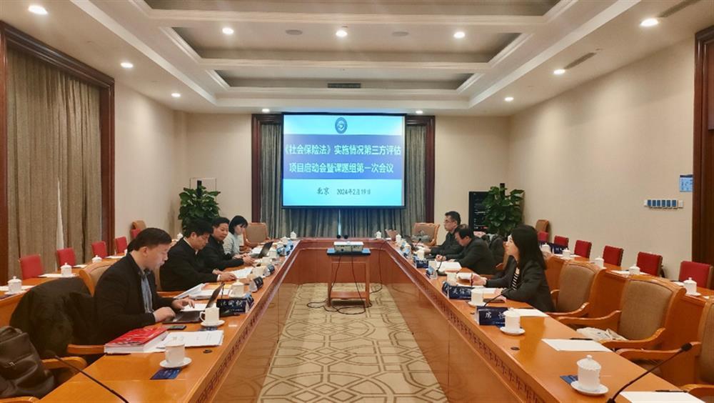 2024年2月19日,《社会保险法》实施情况评估项目启动暨课题组第一次会议在北京国二招宾馆举行。中国社会保障学会会长郑功成教授主持会议。课题组成员、学会副会长浙江大学教授何文炯、西南财经大学教授林义、中山大学教授申曙光、浙江大学研究员金维刚,秘书长、中国人民大学教授鲁全,中国人民大学副教授杨俊、乔庆梅,中国社会科学院副研究员华颖等参加会议。