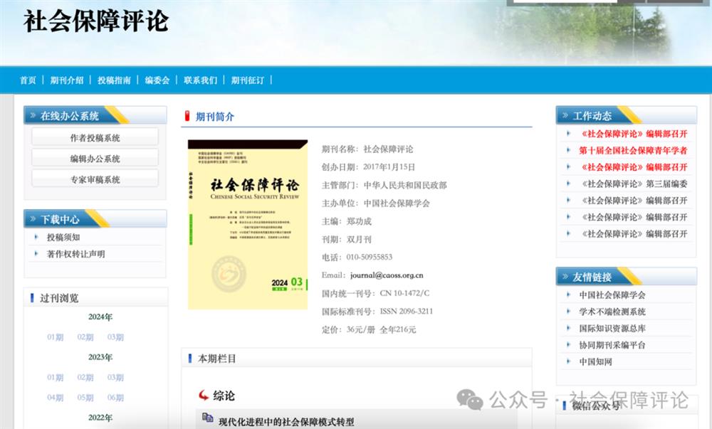 《社会保障评论》在线投稿系统页面截图