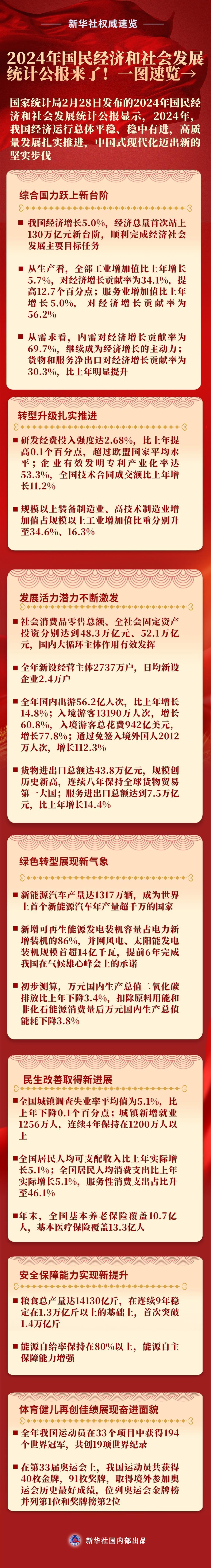 2024年国民经济和社会发展统计公报来了!一图速览→