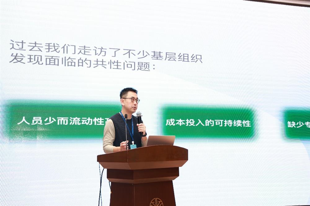 11月1日上午,简短而内容丰富的开班仪式后,“筑底培训”第一期正式启动。收场培训聚焦“社区慈善数字化建设”专题,由腾讯SSV技术生态部项目经理余涛主讲。他指出,公益数字化转型绝非简单的技术叠加,而是一场涉及服务理念、数据思维和运营模式的系统性变革.余涛通过构建“三维跃迁”理论框架,深刻阐释了数字化建设的核心要义:在服务维度,强调从行政任务导向转向用户需求导向的服务设计革命;在数据维度,倡导将静态数据档案转化为动态决策引擎;在运营维度,提出通过数字化标签实现服务对象的精准触达。为了说明这一转型路径的可行性,余涛展示了三个典型实践案例:深圳红树林基金会通过智能表格系统大福提升志愿者管理效率;上海真爱梦想基金会运用商业智能工具构建项目决策驾驶舱;山东潍坊助老组织则创新性地将线下服务知识转化为企业微信端的AI智能助手。这些案例生动诠释了数字化不仅解决操作层面的效率问题,更能重构公益服务的底层逻辑。培训特别设置实操环节,邀请北京市公鸣社会工作发展中心陈嘉鑫现场演示智能体工具的应用,通过知识库搭建、服务流程数字化等实景演练,帮助学员建立从理论到实践的认知闭环。整场培训既立足当下解决公益组织的数字化“生存”问题,更着眼未来为迎接AI时代的个性化慈善服务奠定能力基础。