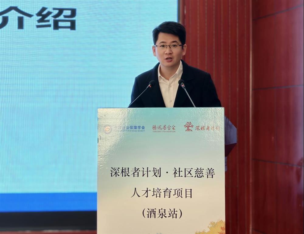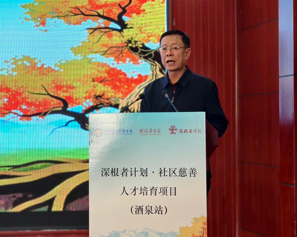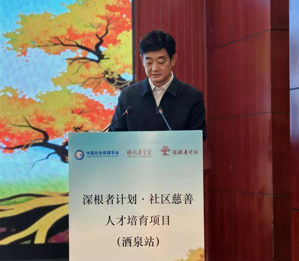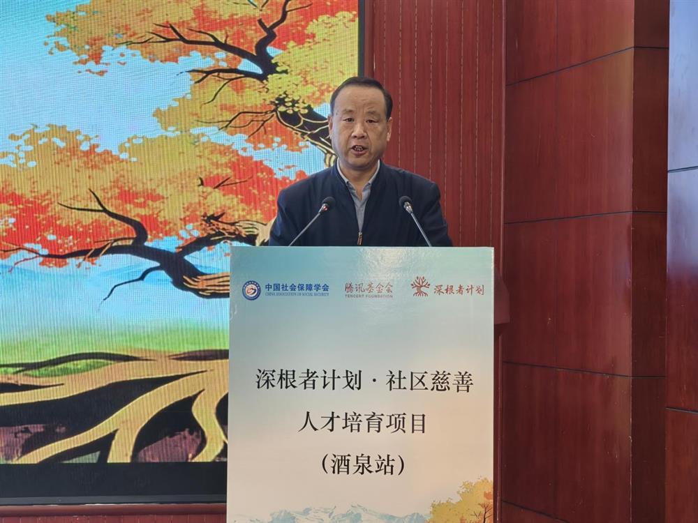 酒泉市慈善联合总会会长李永军在讲话中首先向关心和支持酒泉市社区慈善发展及本次培训的各方表达了诚挚感谢。他指出,由中国社会保障学会、腾讯公益慈善基金会牵头发起的“深根者计划”项目,受到省、市慈善相关部门重视和广泛欢迎,为社区慈善的长远发展提供了坚实人才支撑。酒泉作为该项目试点城市之一,在中国社会保障学会的专业指导及省、市慈善总会的积极推动下,相关慈善工作已取得阶段性成果。目前,酒泉正通过完善保障体制、加快数字化转型、打造特色慈善品牌等举措持续推进本地慈善事业高质量发展。他提到,当前酒泉慈善事业正处于发展关键阶段,还面临专业人才短缺等现实问题,此次“深根者计划”培训项目的落地,将助力当地培养一批社区慈善核心人才,探索并形成可复制、可推广的酒泉经验。他希望全体学员珍惜学习机会,认真钻研、学以致用,切实提升服务基层的专业能力,努力成长为社区慈善发展的积极推动者。