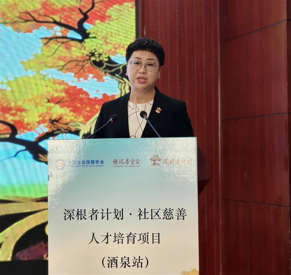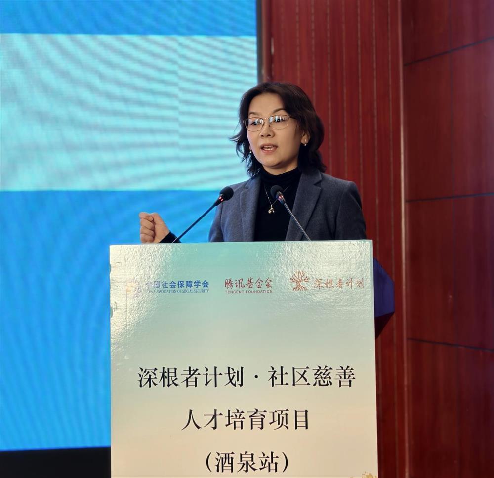 腾讯公益慈善基金会项目总监王艳君在致辞中全面介绍了“深根者计划”的项目背景、项目架构、培养模式、课程体系等内容。她指出,腾讯基金会联合中国社会保障学会牵头发起“深根者计划?社区慈善人才培养项目”,旨在培养一批扎根基层、具备专业能力、能够激活社区生态的复合型慈善人才。她表示,腾讯将持续践行科技向善与企业社会责任,将依托“2+4+N”开放架构,发挥科技优势,联合多方伙伴构建广泛连接的赋能体系,致力于通过资源整合与生态共建,助力社区慈善解决实际问题。她期待各位学员能通过此次参与式学习,深刻理解社区慈善“立足社区、动员社区、服务社区、提升社区”的十六字方针,将所学转化为实际行动,为酒泉的基层治理创新与社区邻里守望注入更多专业与温暖力量。