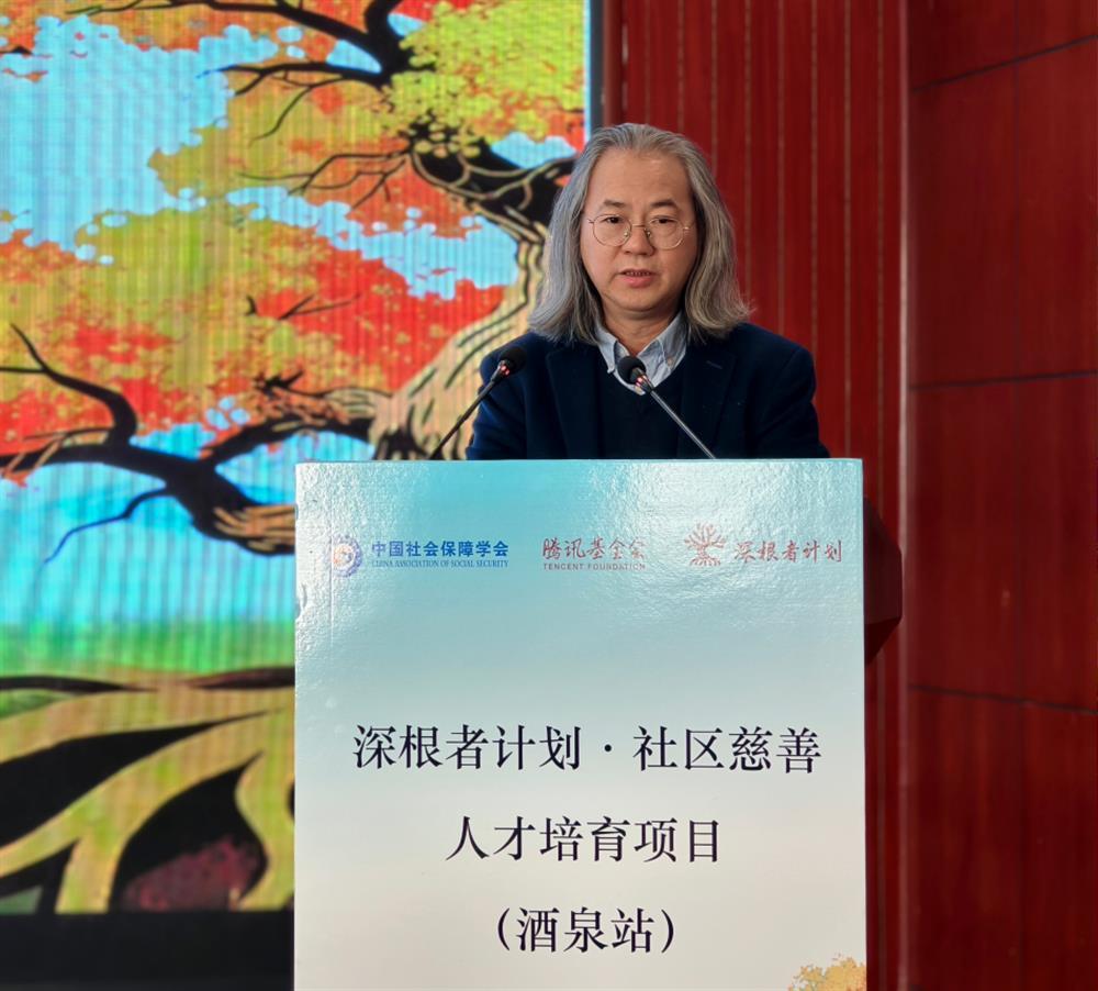 2026年1月9-11日,由中国社会保障学会、腾讯公益慈善基金会联合发起,中国社会保障学会慈善分会主办,酒泉市民政局、酒泉市慈善联合总会、肃州区民政局、肃州区慈善协会联合承办的“深根者计划·酒泉赋能实践基地”启动仪式暨社区慈善人才能力建设培训(第一期)在酒泉东方国际大酒店举行。开班仪式由酒泉市民政局党组书记、局长肖文祥主持。中国社会保障学会副会长、西北大学教授席恒,腾讯公益慈善基金会项目总监王艳君,伊利集团可持续和社会价值副总裁乔璐先后致辞,酒泉市慈善联合总会会长李永军讲话。甘肃省慈善联合总会副会长李杰,甘肃省慈善联合总会副会长辛广楠,中国社会保障学会副秘书长兼慈善分会副会长刘佑平,中国社会保障学会慈善分会副会长、北京师范大学教授谢琼,酒泉市慈善联合总会副会长贾其全,酒泉市政府驻京联络处主任孙香玲,酒泉市肃州区委常委、区政府副区长张志宏,酒泉市民政局党组成员、副局长姬莉,酒泉市肃州区慈善协会副会长王稳庄,酒泉市肃州区民政局党组书记、局长苏尚全,酒泉市肃州区民政局党组成员、区慈善协会秘书长张兴强等领导嘉宾出席启动仪式。来自中国社会保障学会及慈善分会、腾讯公益慈善基金会、伊利集团和上海、杭州、绍兴、武汉、长沙、成都等地的专家学者,以及酒泉市肃州区各街道、社区(村)和部分区县慈善组织的学员代表等共计150余人参加。