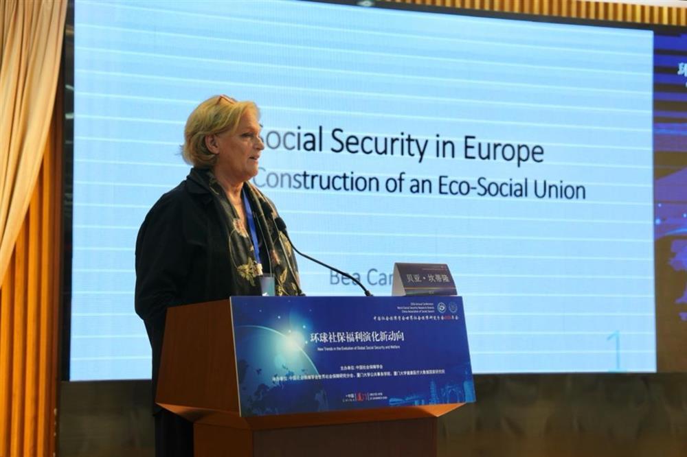 安特卫普大学教授贝亚·坎蒂隆(Bea Cantillon)以《欧洲社会保障:构建生态社会联盟》为题,梳理了欧盟社会保障角色的演变历程。她指出,欧盟最初基于辅助性原则仅协调跨国劳动者的社保权益,但随着经济一体化深化、东扩、金融危机及绿色转型等挑战,欧盟的社会职能持续扩展。当前,欧盟通过确立同社会目标、叠加软硬治理框架、加大生态与社会资金投入等路径,正推动成员国福利体系走向协同发展。