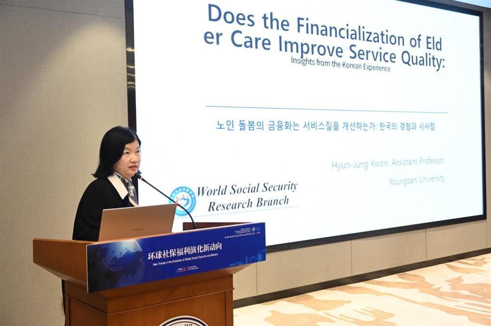 分论坛三上半场由中国社会科学院研究员张浚老师主持。荷语鲁汶大学教授科恩·弗莱明克斯 (Koen Vleminckx) 作了题为“Social Investment as Economic Infrastructures and an Asian Perspective”的发言。常州大学黄冠教授作了题为“Crossing the Structural Tipping Point: A Cross-National Empirical Study on the Changing of Employment Forms Forcing the Paradigm Shift in Social Insurance—Empirical Evidence from 25 OECD Countries (1990-2023)”的发言。 浙江工商大学教授杨方方作了题为“The Comparative Predicament of Philanthropy and a Transnational Dialogue Framework of "Affect-Reason-Law"—With a Discussion on the Relationship between Philanthropy and Social Security”的发言。韩国庆尚国立大学林正美 (Lim Jeong-mi) 教授作了题为“The Effectiveness of Quality Management Policies in Long-term Care Facilities”的发言。浙江大学兼职研究员王新梅老师作了题为“How Has the Upward Trend of the Replacement Rate of China’s Public Pension Been Incorrectly Concluded as the Sharp Decline?”的发言。复旦大学丁纯教授评议。
